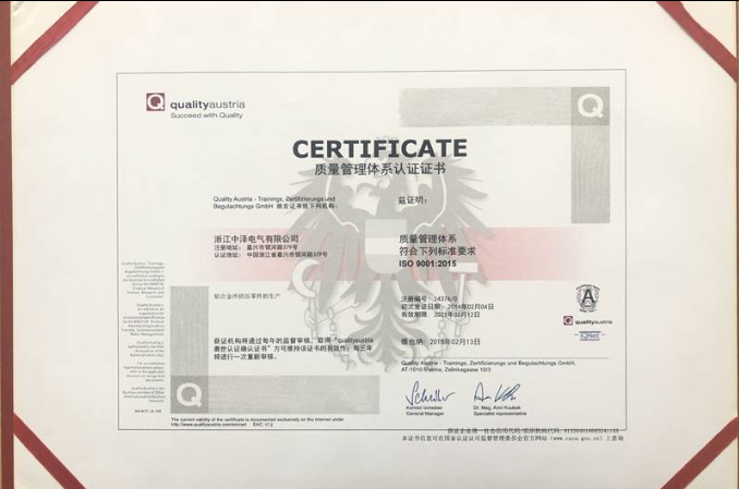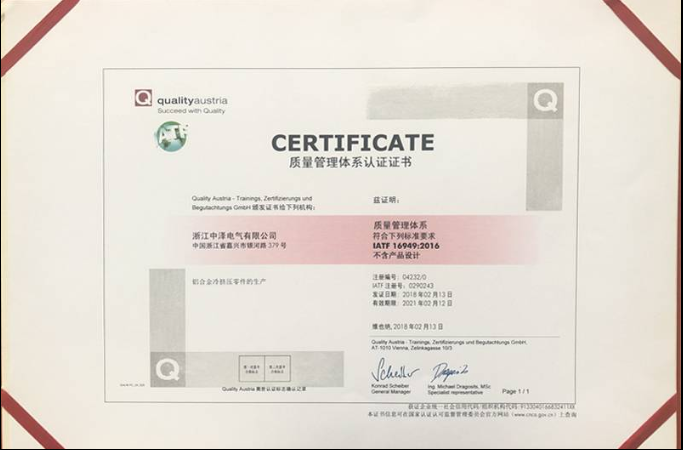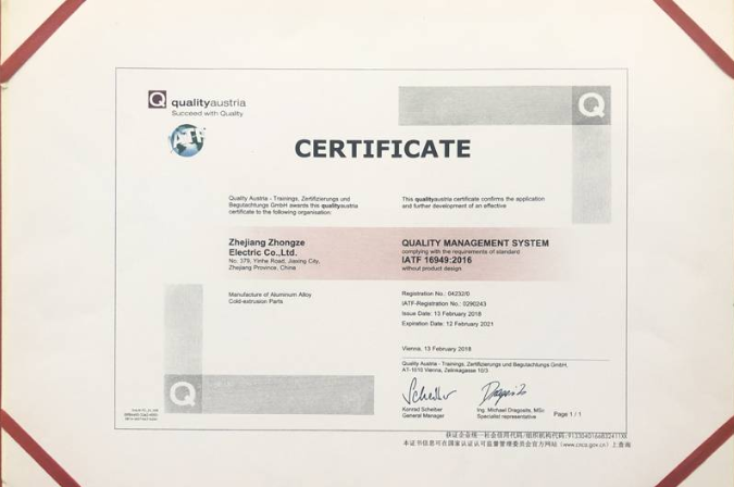 关于浙江中泽电气有限公司简介:集团公司共有5家生产型分公司,分别位于嘉兴、温州、厦门、深圳,属于国家高新技术企业,公司起步于精密冷挤压铝制品和精密注塑制品,是国内第一家电容器铝壳、燃油滤清器铝壳、燃油泵铝外壳的生产企业,也是国内第一家电容器芯棒、2.5系列电容塑壳的生产企业。中泽电气是一家集新能源动力电池结构件、超级电容器结构件、电容器配件、汽车零部件的研发、生产、 销售于一体的高新科技企业 。公司注册资金2000万, 自有土地14095平米,现代化标准厂房16200平米,员工总数350名,其中专业技术人员56名。拥有模具自主加工设备、多台德国进口核心设备、铝制品加工全套产线以及齐全的检测设备,大型铝壳或铝制品月产能500万件。